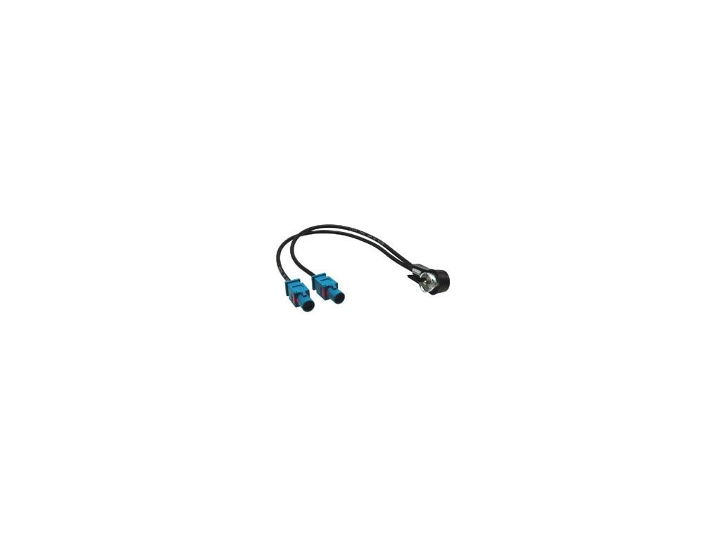 Anténny adaptér pre inštaláciu autorádia s ISO anténnou zásuvkou do automobilov s dvomi anténami zakončenými FAKRA konektorom.
