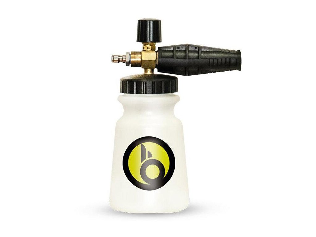 Univerzálny napeňovač určený pre tlakové umývačky s uchytením 1/4''. Maximálne účinný napeňovač navrhnutý na bezchybnú a jednoduchú starostlivosť o vaše vozidlo. S týmto napeňovačom získate hustú aktívnu penu a zaistíte si bezpečné a bezrizikové umývanie. Objem napeňovača je 1 liter a ergonomický dizajn zaručuje pohodlie a stabilitu proti prevráteniu. Hlavné súčasti napeňovača sú vyrobené z mosadze a fľaša je vyrobená z chemicky odolného a kvalitného plastu HDPE. Inovatívny plastový uzáver má veľké hrdlo na jednoduché zatváranie a otváranie fľaše, vďaka čomu sa fľaša ľahšie plní, vždy sa trafíte a výrobky vydržia dlhšie, pretože nebudú všade. Tryska je penová a odolnejšia na krútenie a uchopenie.