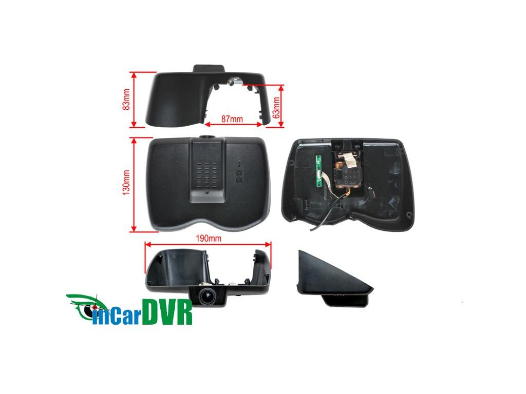 Kamera je upevnená v držiaku OEM vnútorného spätného zrkadla. Prívodné káble sú skryté.