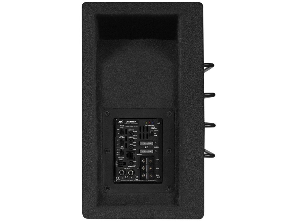 Pre dobré subwooferové systémy sú vždy potrebné výkonné prídavné zosilňovače. Ak je inštalácia externého zosilňovača príliš zložitá alebo nemáte priestor, môžete použiť aktívne varianty, ktoré už majú zosilňovače inštalované z výroby. Ale pozor, často z cenových dôvodov - čo je pre laika na prvý pohľad ťažké rozpoznať - sa často inštalujú analógové výkonové zosilňovače, ktoré sú z hľadiska výkonu skôr slabé alebo zastarané. Niekedy možno nájsť aj tie najjednoduchšie 12-voltové mostíkové čipy, ktoré nerobia nič viac než jednoduché autorádiá. ESX tu zaujíma iný prístup a integruje najmodernejšie moduly zosilňovačov triedy D, ktoré môžu mobilizovať výstupný výkon až 400 wattov/RMS. Takto vybavené veľmi kompaktné systémy aktívnych subwooferov QUANTUM QXB poskytujú extrémne vysoký výkon basov.