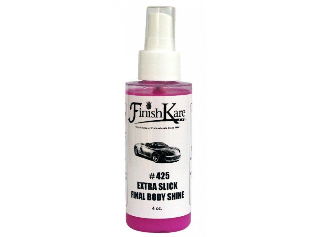 Finish Kare #425 Extra Slick Final Body Shine 118 ml. Inovatívny detailér na báze polyméru. Záverečný detailný prípravok obsahuje polymérový sealant. Ľahko a bez námahy odstraňuje jemné nečistoty, odtlačky prstov, škvrny od vodného kameňa a ďalšie nečistoty. Po použití Extra Final Body Shine budú povrchy hladké s dokonalým finišom show-car vzhľadu. Jeho špeciálna antistatická zložka zabraňuje usadzovaniu prachu, peľu a drobných poletujúcich nečistôt.