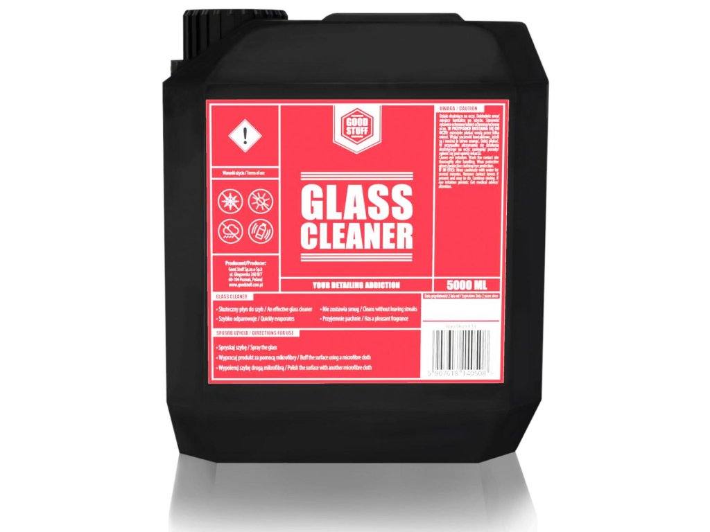 Good Stuff Glass Cleaner 5000 ml. Maximálne šetrný a účinný čistič skla. Jeho inovatívne zloženie s amoniakom a metanolom zaručuje minimálny vznik škvŕn. Výrobok je parfumovaný a zaručuje príjemnú prácu.