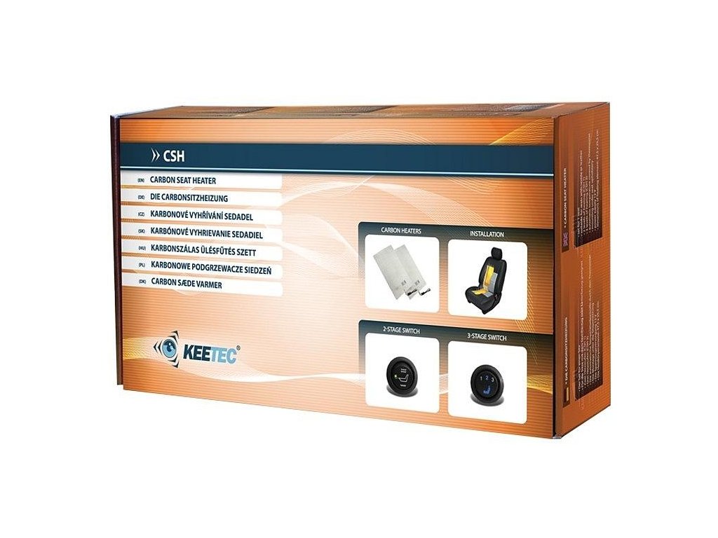 Karbónové vyhrievanie sedadiel KEETEC CSH1 pre jedno sedadlo vozidla s automatickou reguláciou teploty (termostat). Inštaluje sa pod látkové čalúnenie operadla a sedáku. Poskytuje rovnomerné vykurovanie na celej ploche inštalácie v 2 teplotných úrovniach.