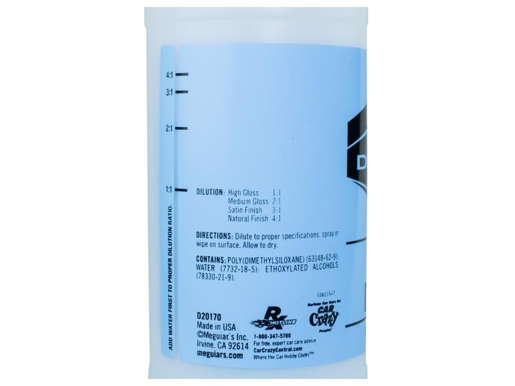 Špeciálne vyrobené pre Meguiar's Hyper Dressing Bottle (D170). Farebný priestor na popis fľaše a rozpoznanie zriedeného výrobku. Priehľadné rysky na jednoduché a jasné riedenie produktov. Rozprašovač nie je súčasťou fľaše. Odporúčame objednať biely - štandardný rozprašovač D110516.