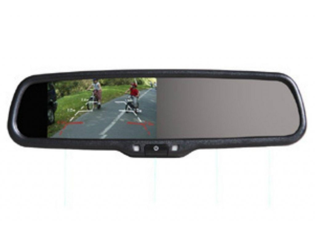 Monitor umiestnený v spätnom zrkadle slúži na zobrazenie obrazu z parkovacej kamery alebo na zobrazenie obrazu DVD prehrávača. Zrkadlo je umiestnené na čelnom skle na mieste originálneho zrkadla. Jednoduchá inštalácia bez zásahu do interiéru automobilu.