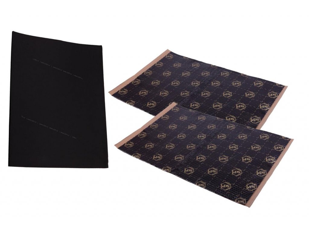 3 pláty antivibračného materiálu, 1 plát termoakustického materiálu