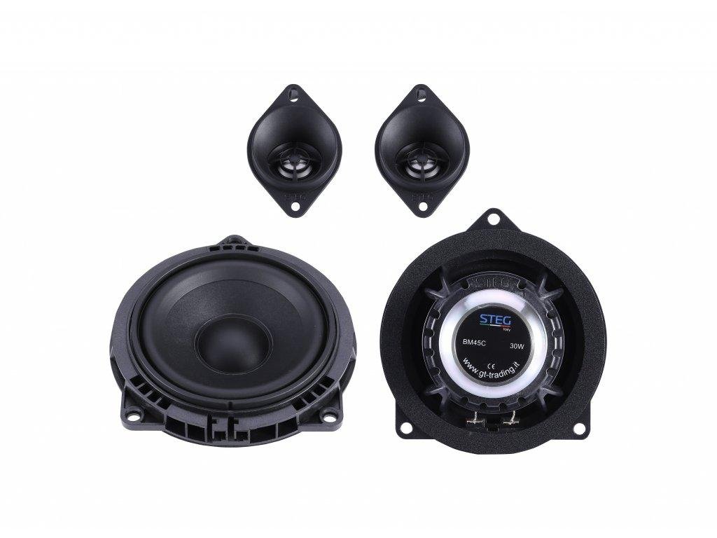 1 pár komponentných reproduktorov STEG BM45C (2x stredobas, 2x výška, kabeláž s konektormi)