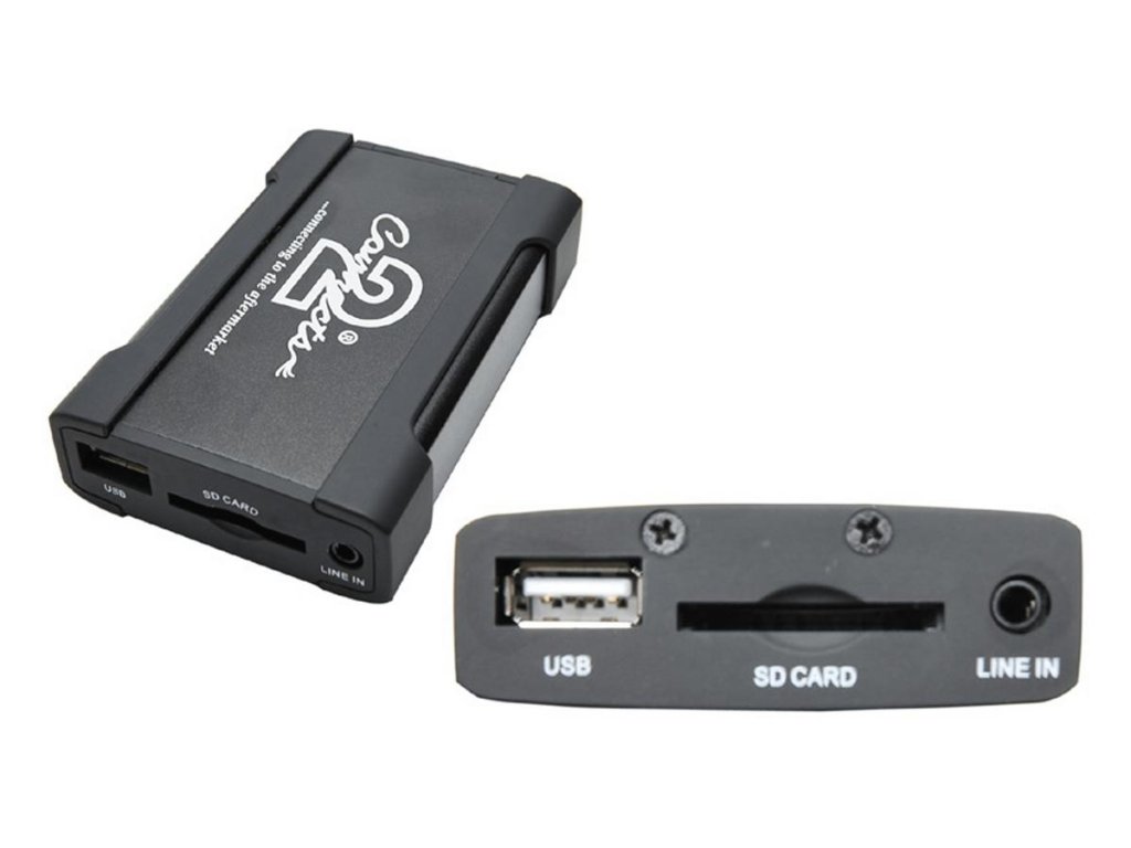 Adaptér umožňujúci pripojenie USB vstupu a AUX vstupu (3,5 JACK) k OEM autorádiám s ovládaním CD meniča (na miesto pripojenia CD meniča). Ovládanie prehrávania hudby z USB príslušenstva pomocou OEM autorádia.