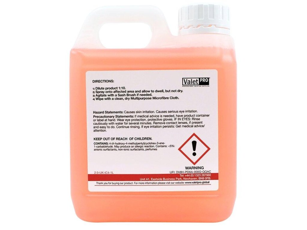 Univerzálny čistič ValetPro Classic All Purpose Cleaner môžete použiť na plasty, čalúnenie i exteriérové časti svojho automobilu. Ľahko si poradí aj so zájdenou špinou, ktorú rozpustí a hravo odstráni. ValetPro Classic All Purpose Cleaner je skvelá voľba, ak hľadáte perfektného pomocníka za rozumné peniaze. Používajte ho na údržbu interiéru aj exteriéru a spoľahnite sa na jeho vynikajúce čistiace schopnosti.