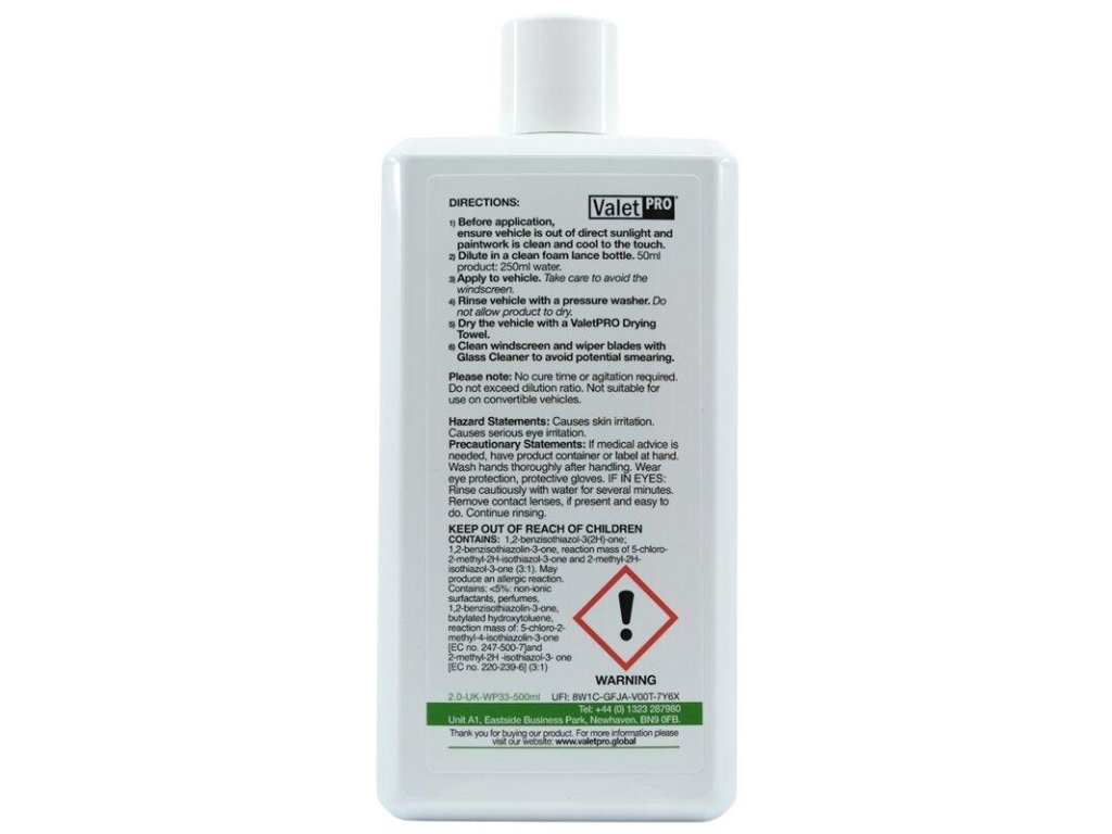 - ValetPro Snow Seal narieďte do napeňovača v pomere 250 ml vody a 50 ml prostriedku.